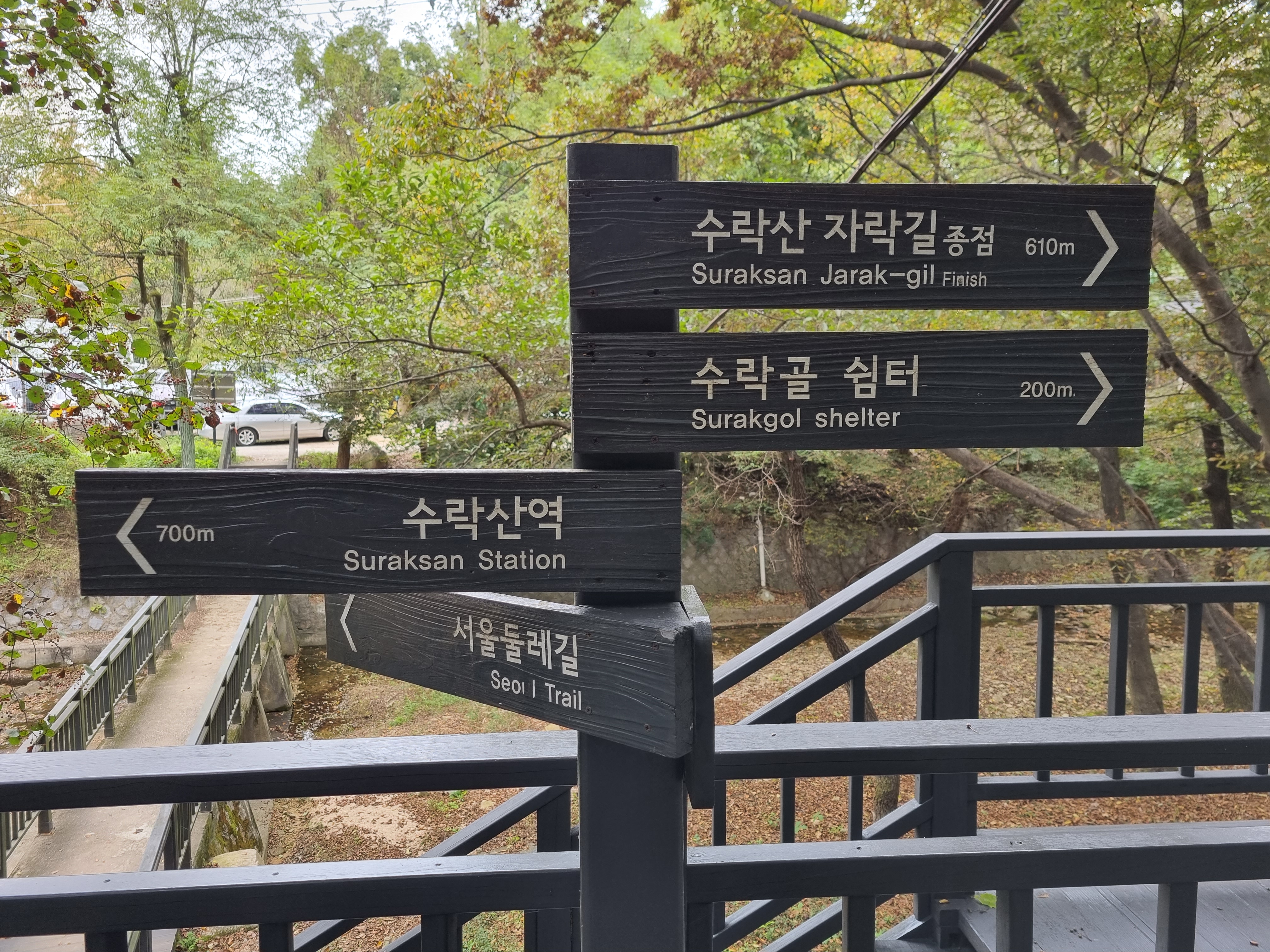 빼꼼히 숨어 있는 주황색 화살표 3.2km 걸었다. 수락산역으로 가는 길도 있다. 집으로 가고싶은 마음 컸던 곳이다.