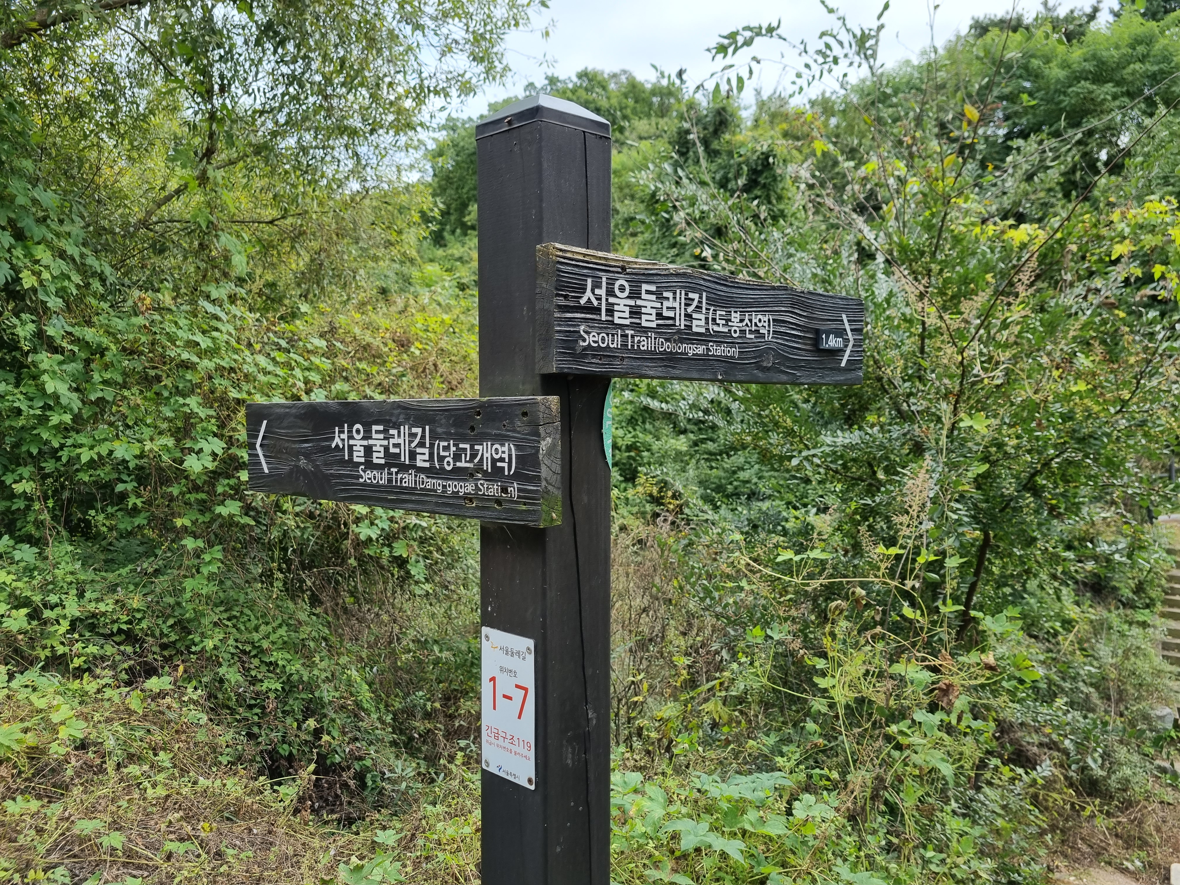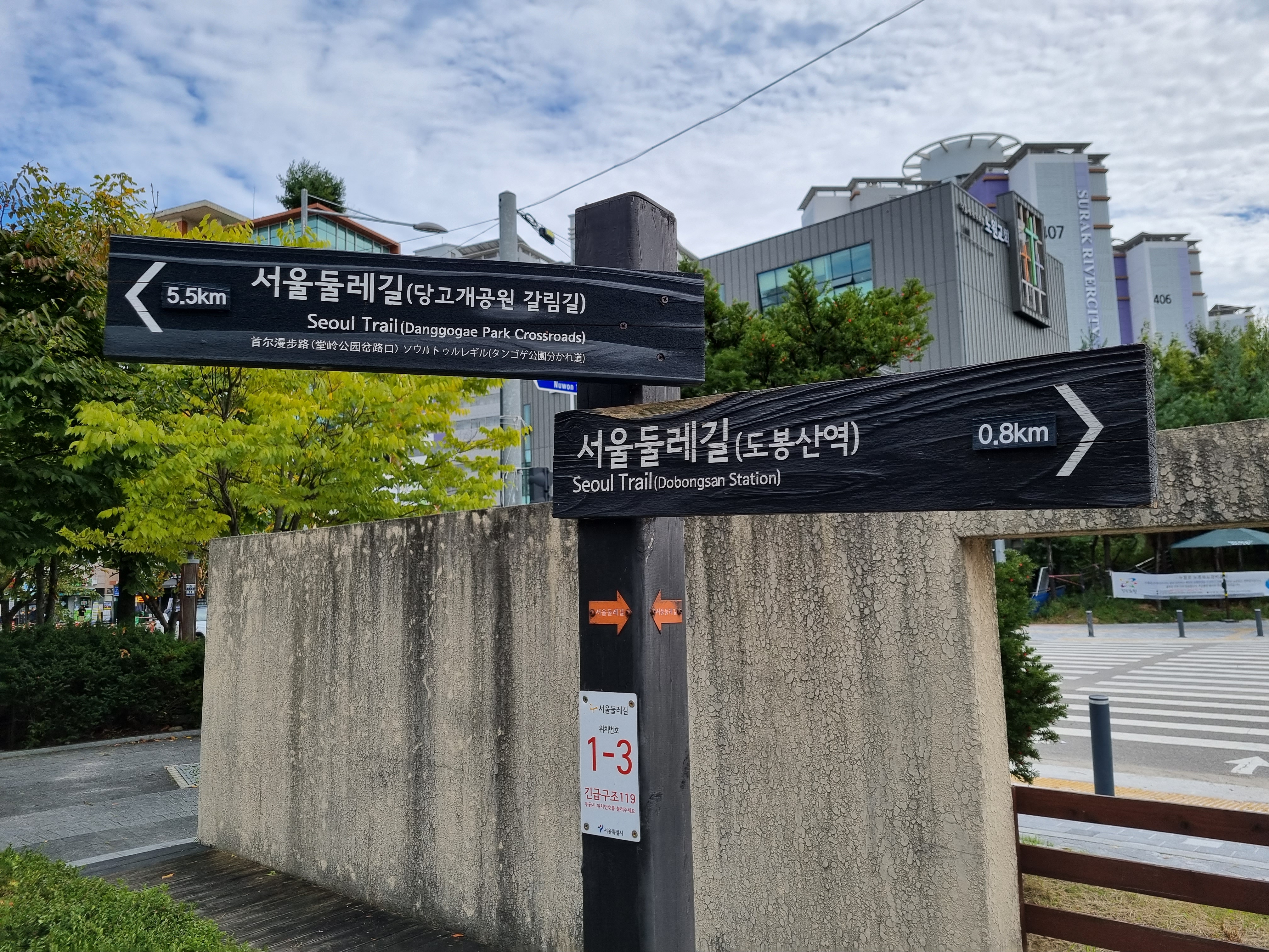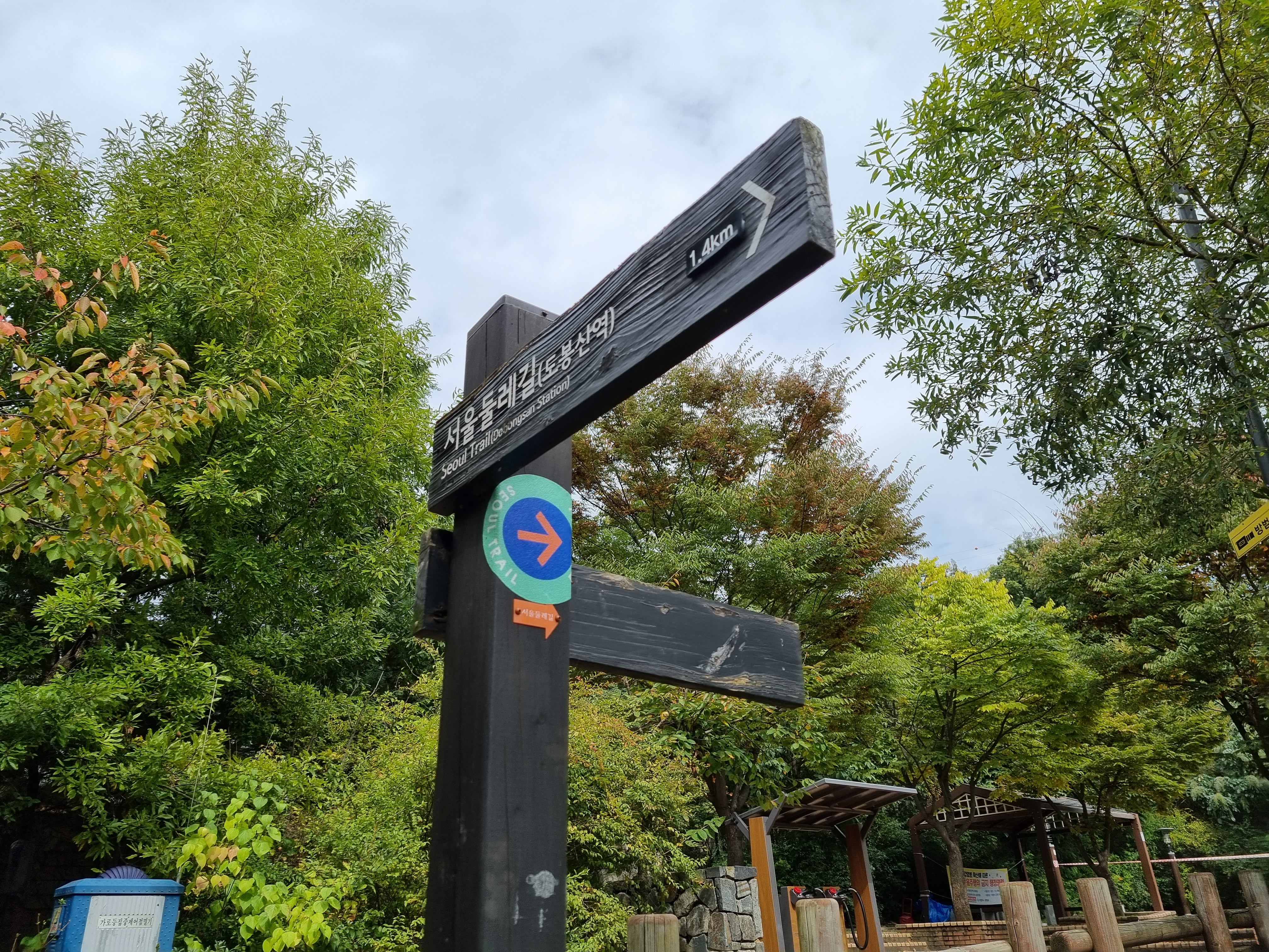 창포원에서 길을 건너는데, 중랑천 부근으로 길을 건너가면 첫 이정표가 나온다.