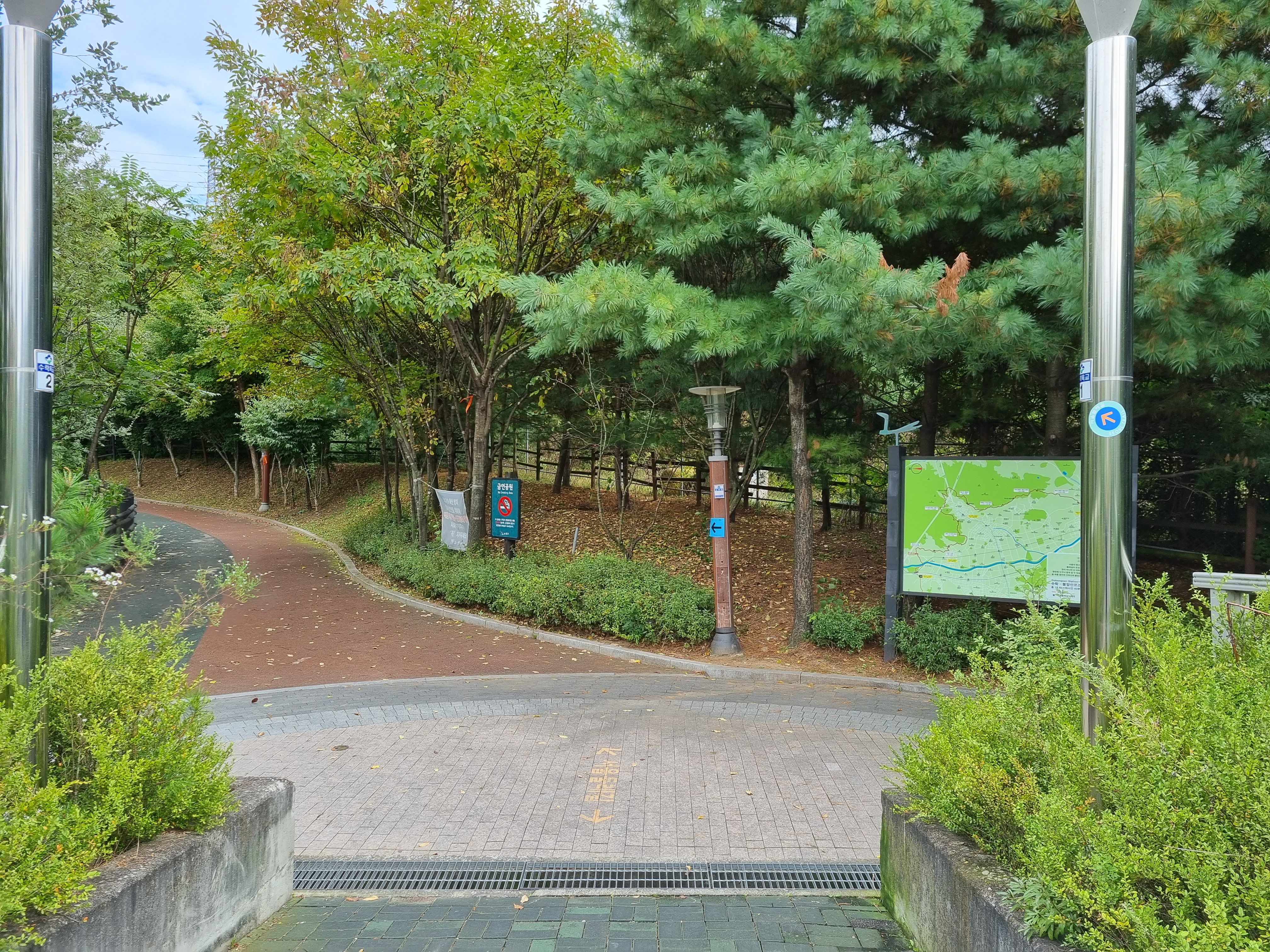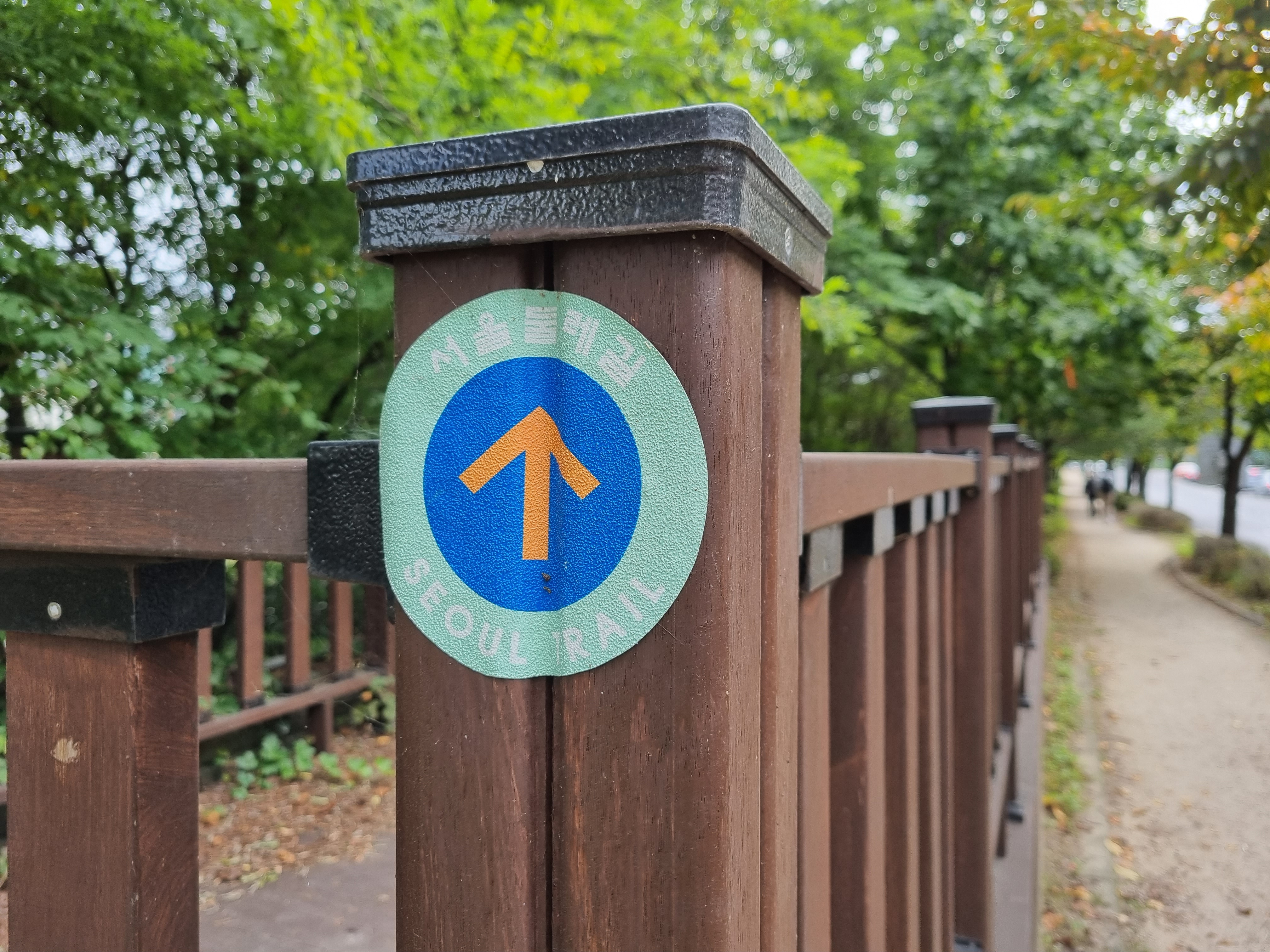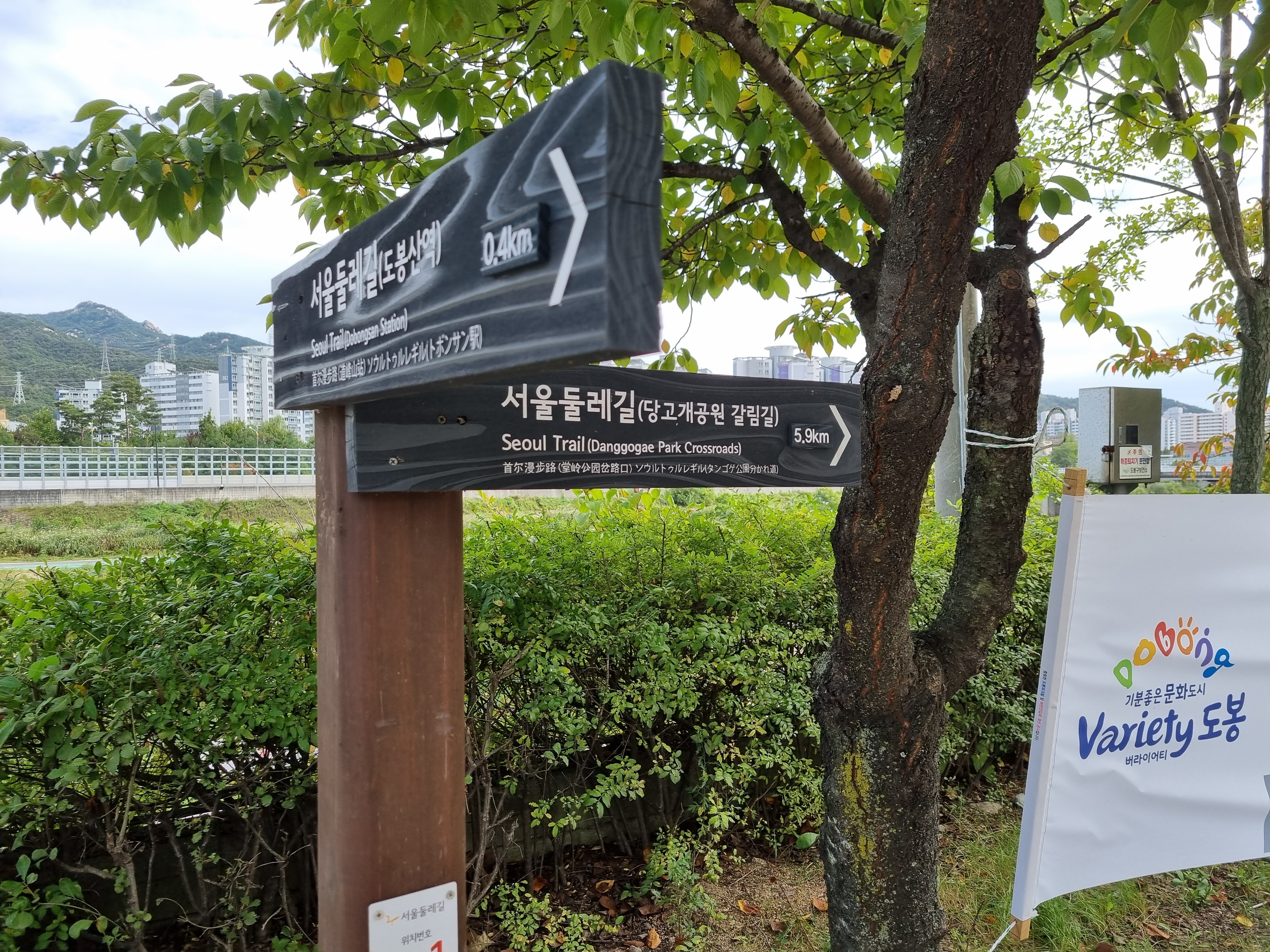 창포원에서 길을 건너는데, 중랑천 부근으로 길을 건너가면 첫 이정표가 나온다.