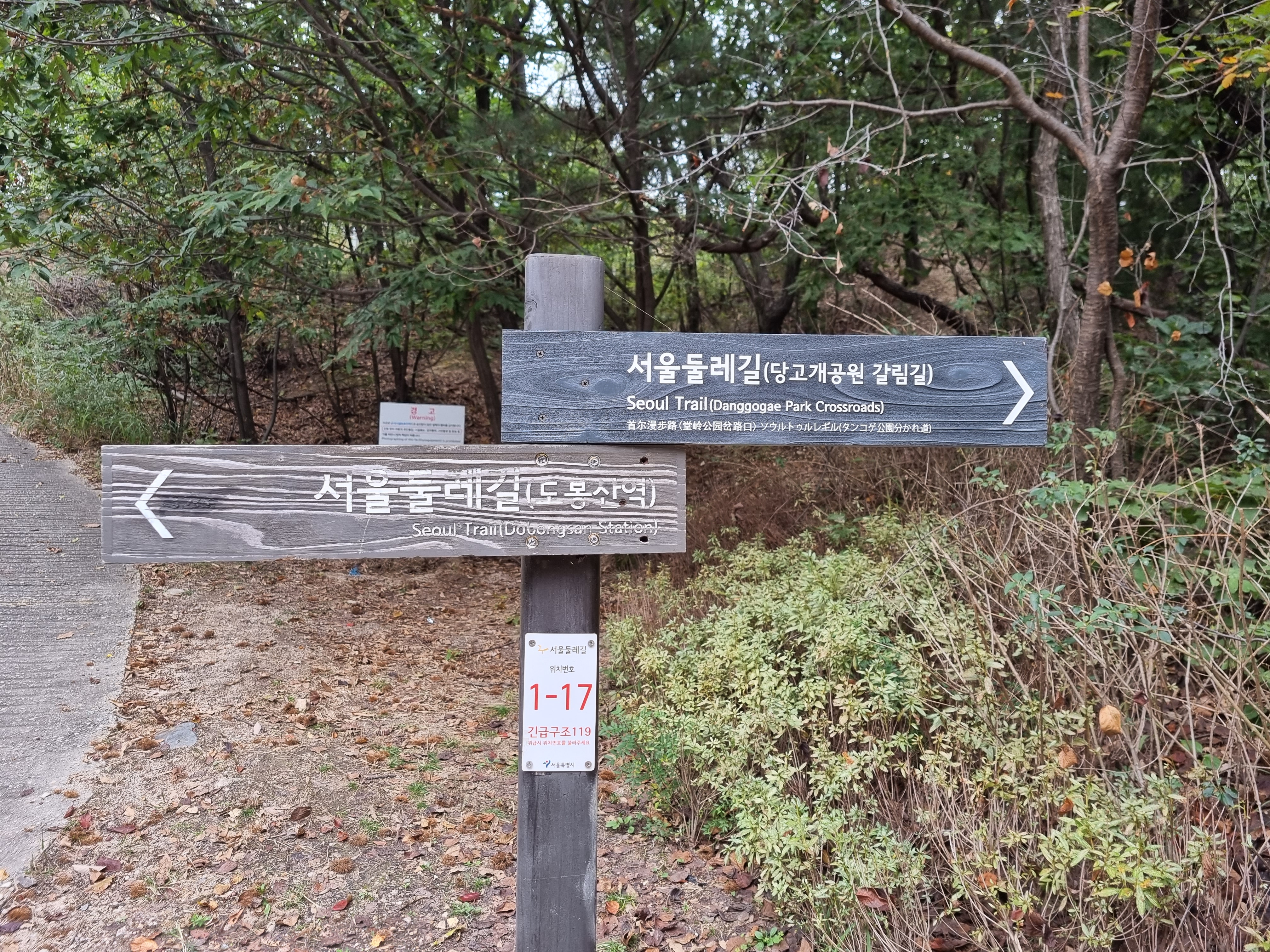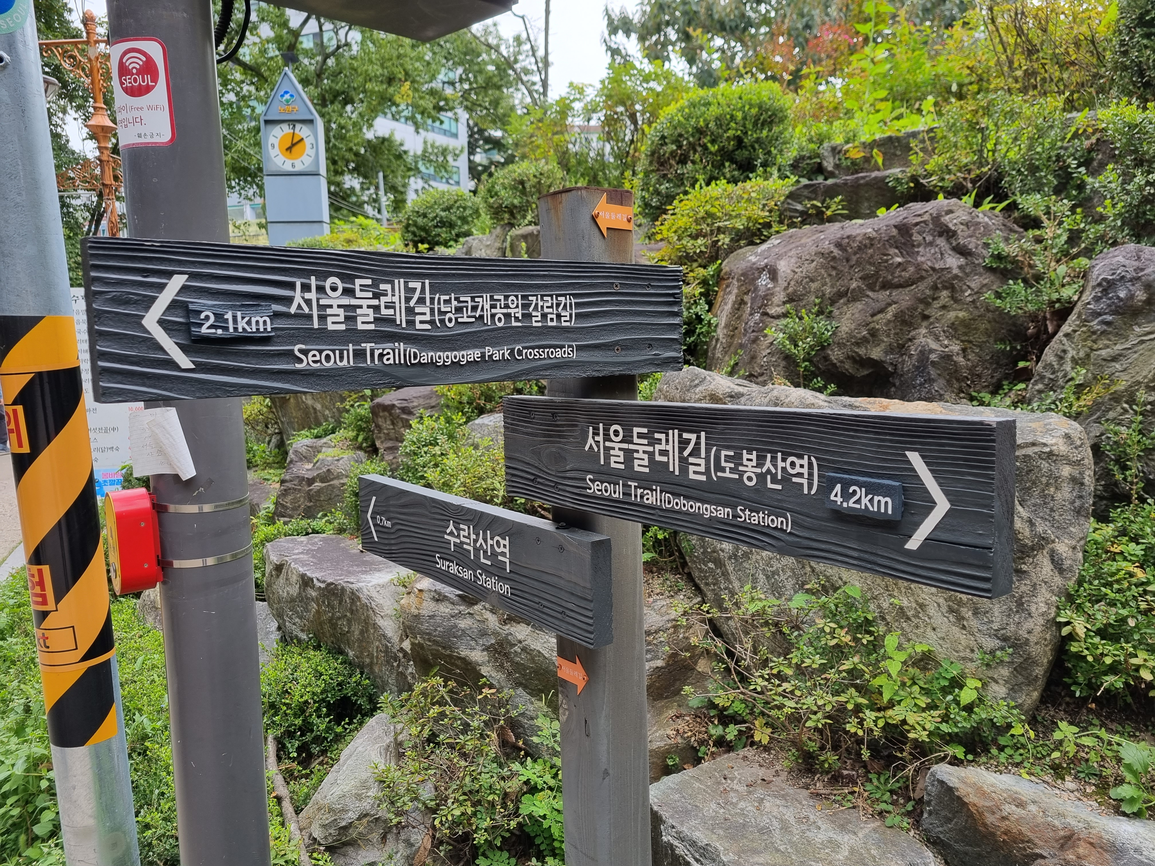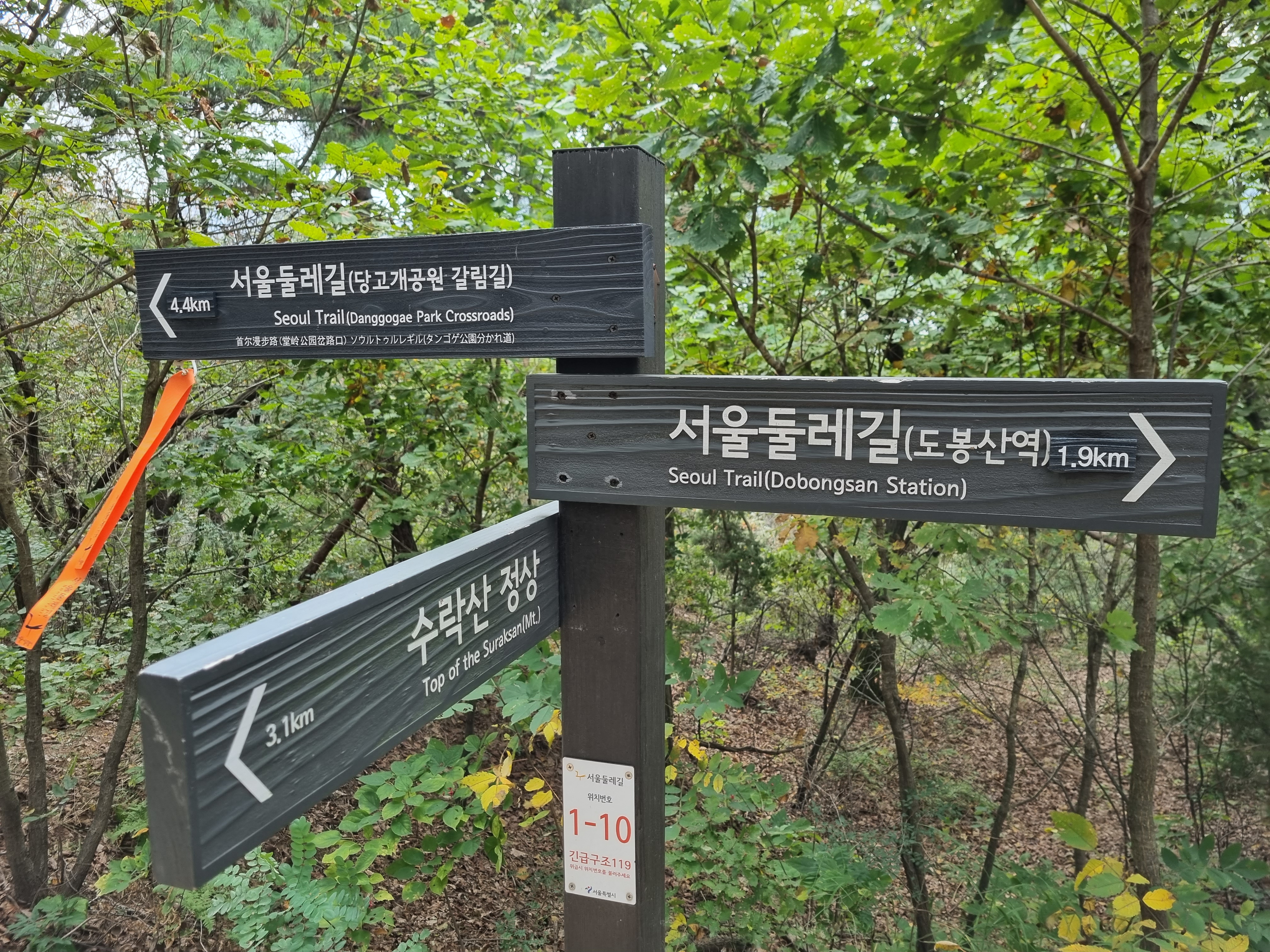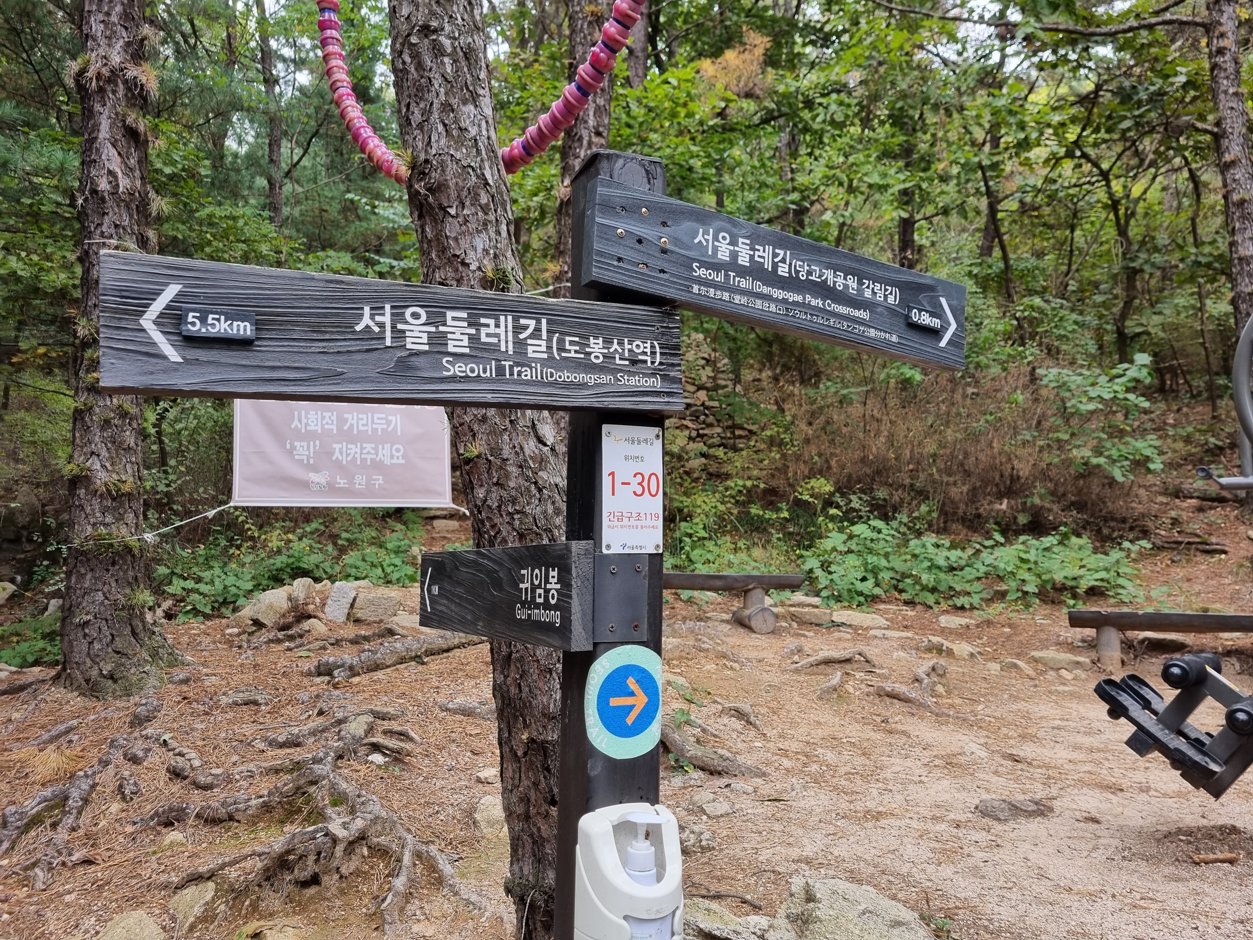 산에서의 갈림길 도봉산역 방향의 km 가 없다. 얼마나 걸었을까?