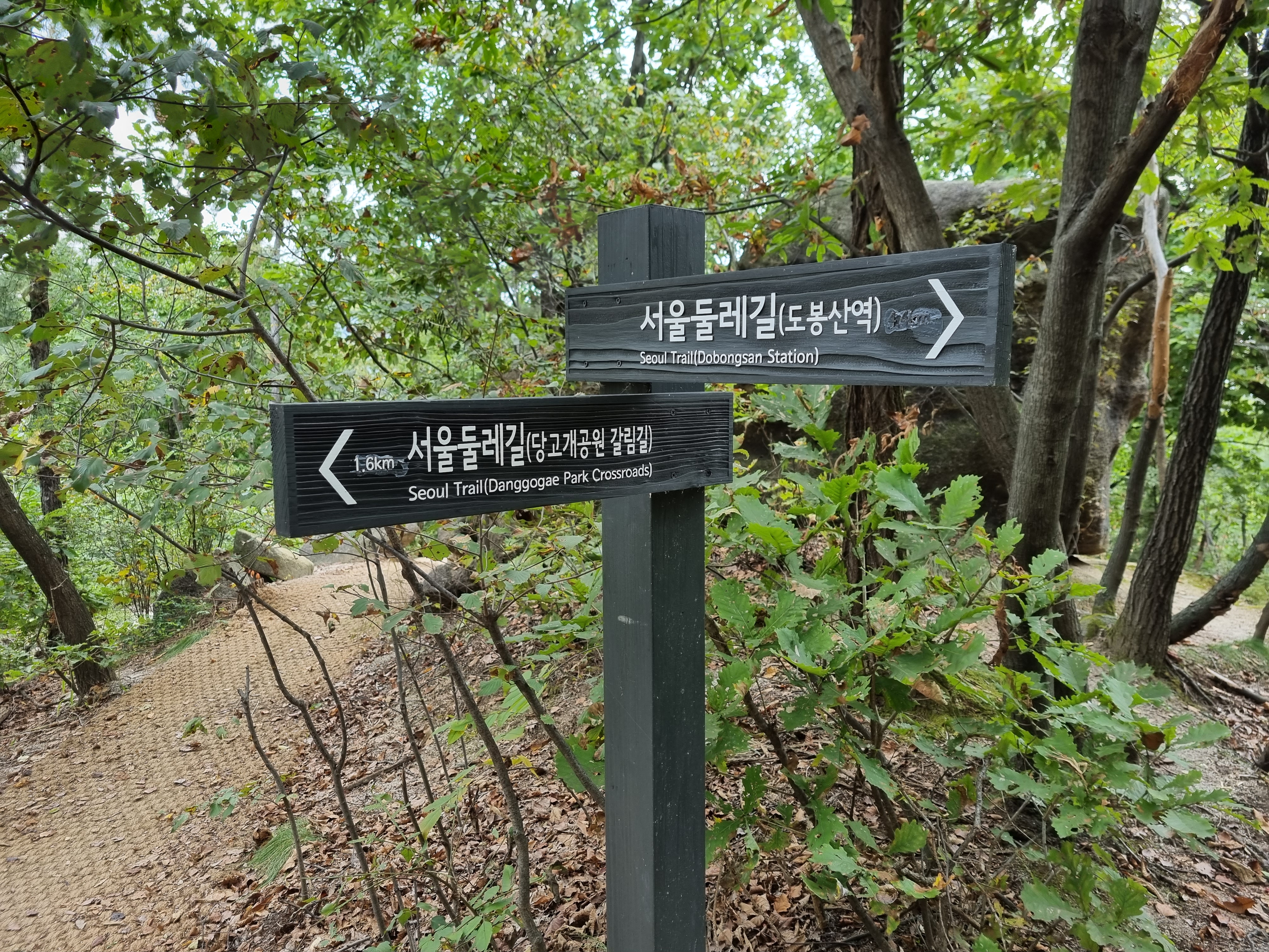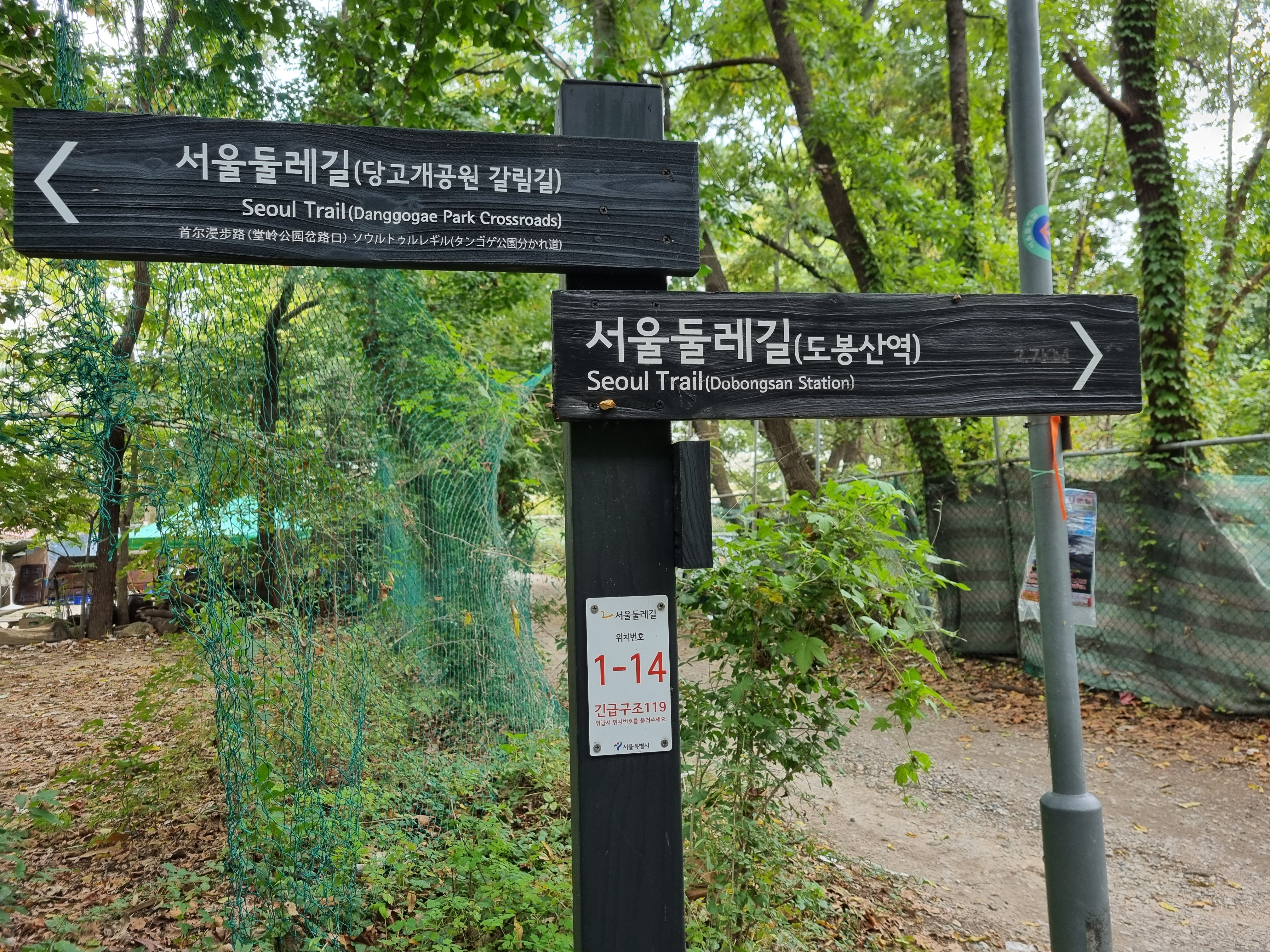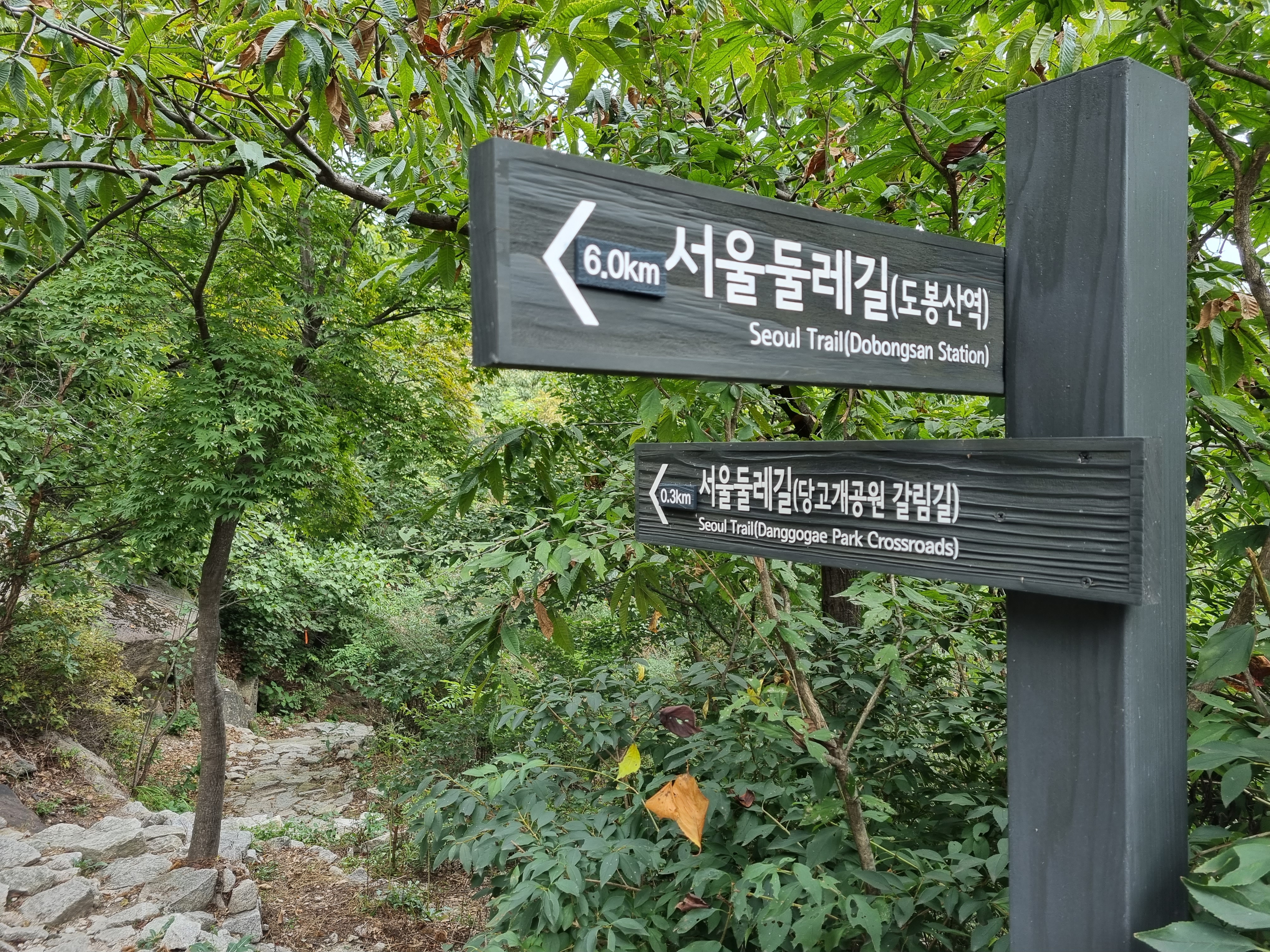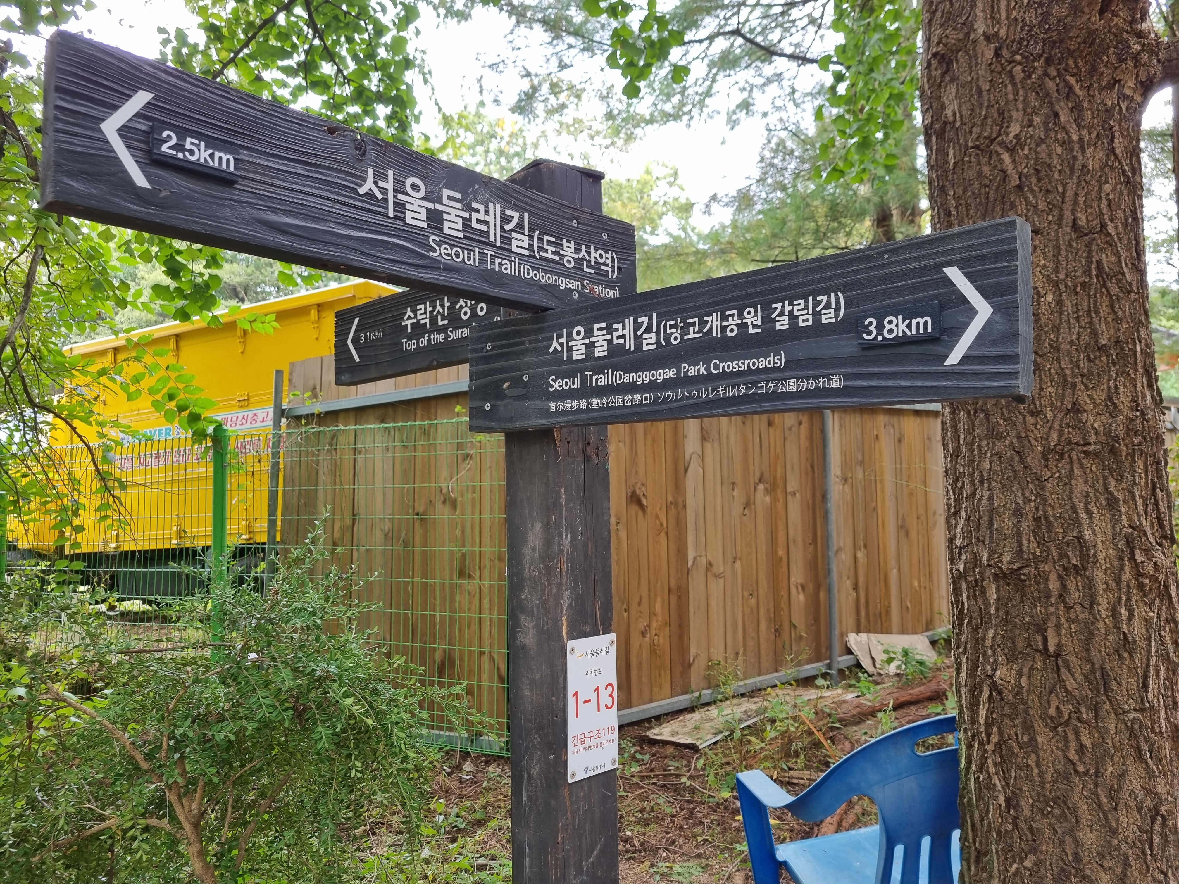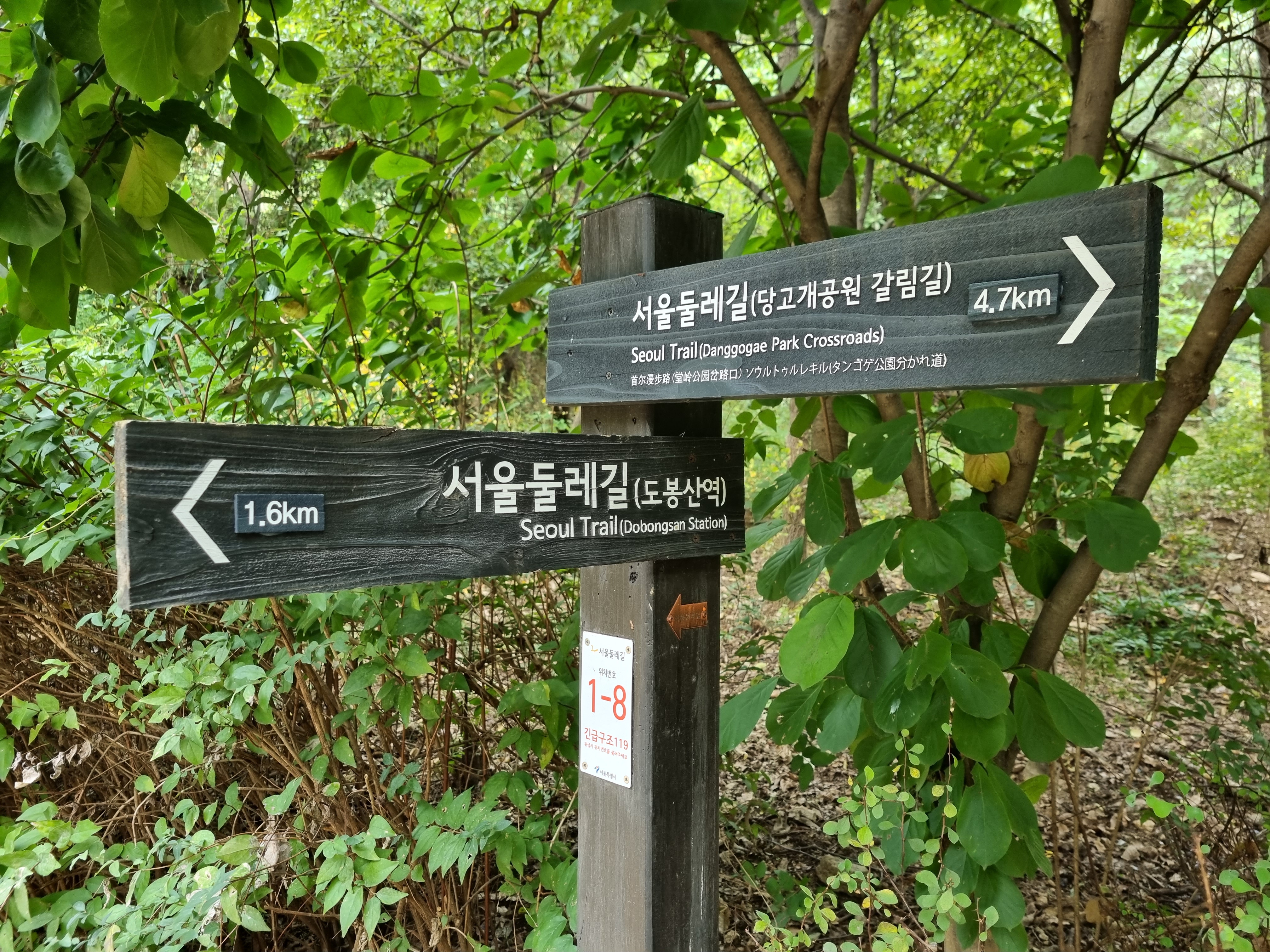산에서의 갈림길 도봉산역 방향의 km 가 없다. 얼마나 걸었을까?