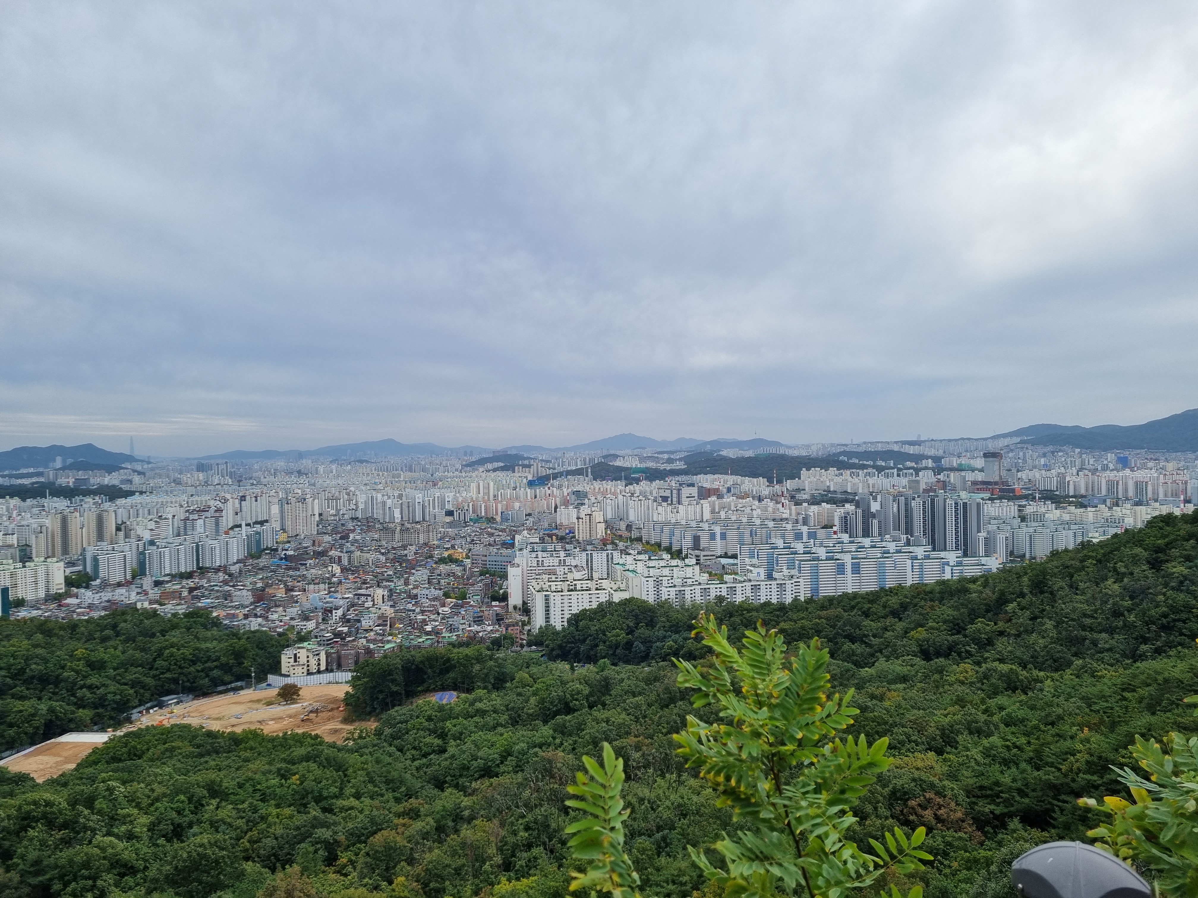 육안으로는 강남 롯데타워와 남산타워가 보였는데 폰 카메라에는 보이지도 않네.