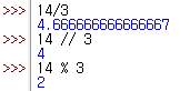 14와 3으로 나누웠을때 몫 및 나머지 구하기