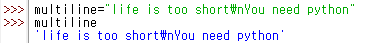 # 연속된 작은 따옴표 3개(''') 또는 큰 따옴표 3개(""") 사용